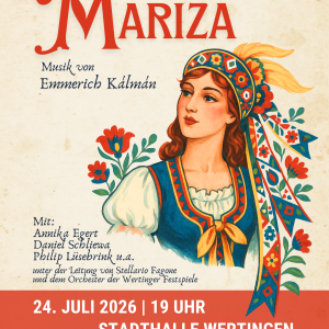 Emmerich Kálmán – Gräfin Mariza Gräfin Mariza: Annika EgertGraf Tassilo: Daniel SchliewaLisa: Franziska ZwinkPopulescu: Daniel GutmannZsupan: Philip Lüsebrink Regie: Philip LüsebrinkOrchester der Wertinger FestspieleMusikalische Leitung: Stellario Fagone